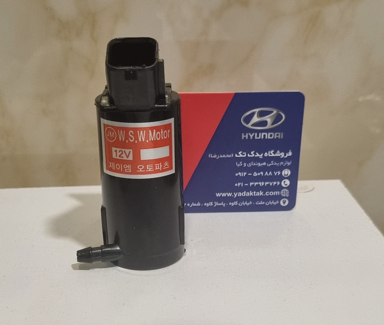 توضیحات: این پمپ شیشه شور ساخت کشور کره میباشد و از طول عمر مناسب و کیفیت مطلوب جهت پمپاژ آب از مخزن شیشه شور به شیشه خودرو برخوردار است